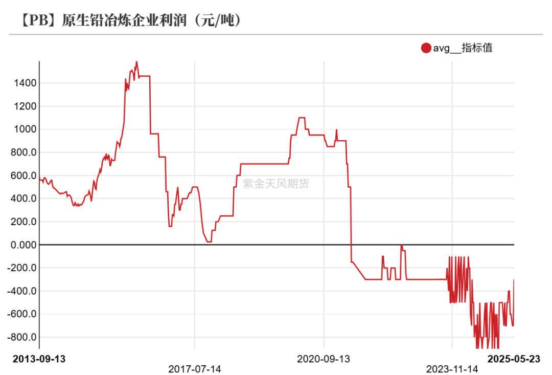 原生铅冶炼利润:偏空 原生铅行业利润亏损650元/吨,亏损幅度环比减少,毛利润率下降。