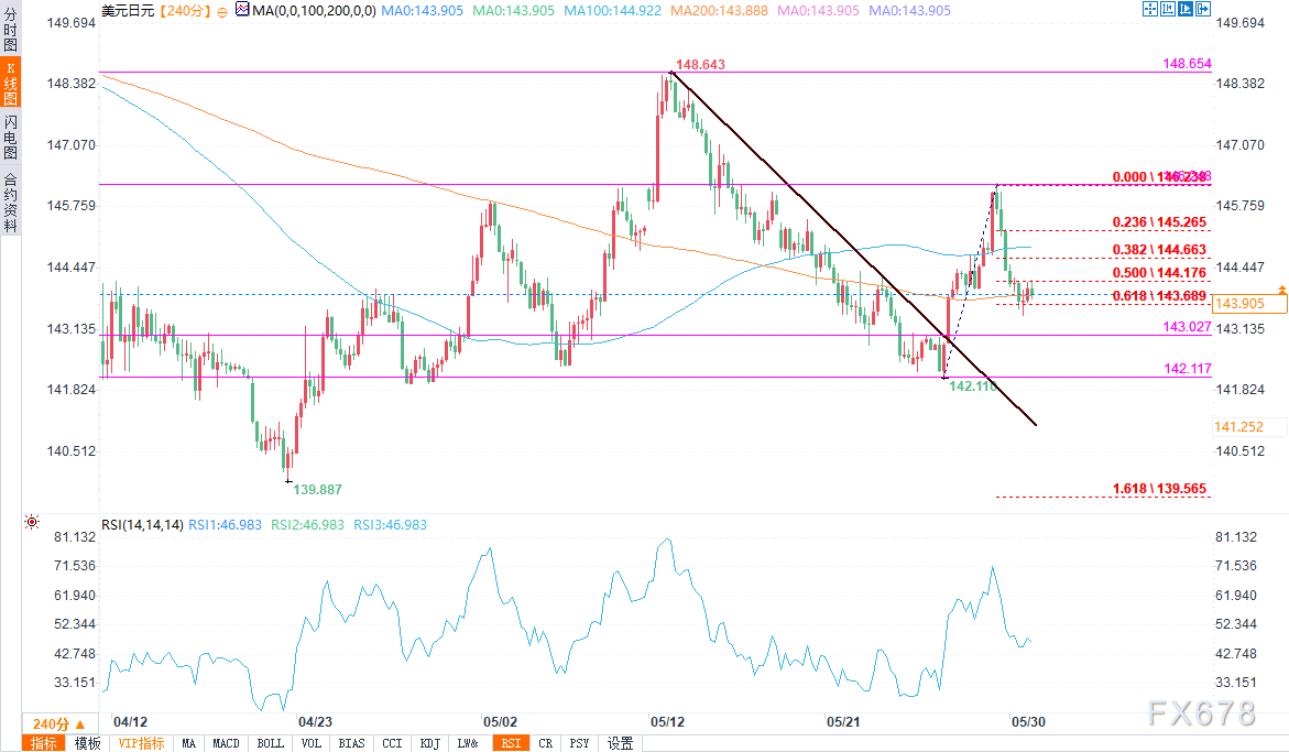 汇通财经APP讯——周五(5月30日)欧盘时段,美元/日元最新价格围绕在143.922至144.275 附近波动,均价为143.917 。前期价格从较高位回落,显示出一定的下行压力。