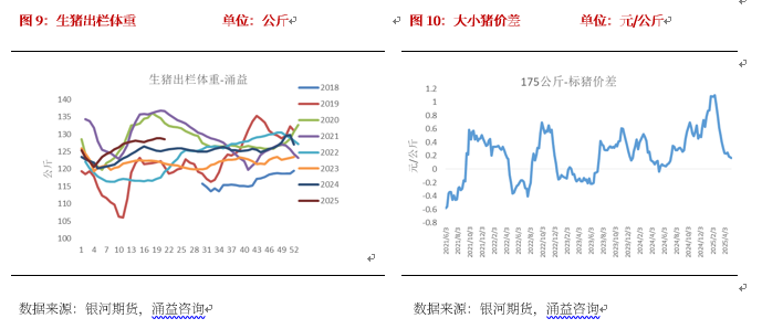 本月以来,生猪出栏体重继续维持高位运行,虽然后期有一定降体重表现,但整体体重仍然处于相对偏高水平,环比下降速度缓慢。受前期养殖端整体压栏影响,当前生猪出栏体重普遍达到128公斤以上。可以看到,月内大小猪价差普遍呈现下降态势,降幅达到0.08元/公斤。大小猪价差走弱一定程度增加了养殖端出栏积极性,预计在近期大体重猪源出栏量增加的背景下,后续生猪出栏体重可能呈现下行态势。