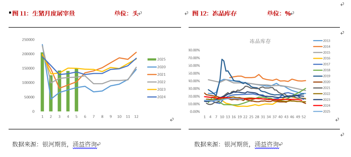 整体来看,月内生猪需求端整体变化不大。高频数据来看,月内生猪屠宰量环比继续呈现增加态势,冻品库存也整体呈现下行态势,这反应了生猪表观需求量有所增加。并且生猪鲜销率呈现增加态势,总体来看,终端承接量较此前有所增加。但需要关注的是,由于在此期间,猪价整体呈现下行态势,这也一定程度反应了终端对于当前价格以及供应承接力度相对有限,需求方面预计较此前变化不大。