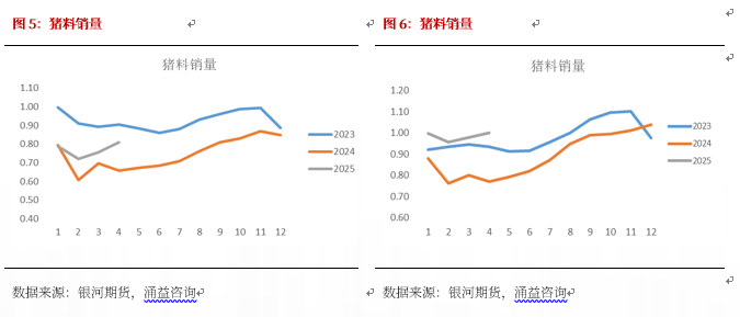 整体来看,月内散户出栏积极性或有所增加,从饲料相关数据以及前期出栏数据综合来看,当前散户存栏仍然处于相对偏高水平。其中,钢联口径预估4月饲料相关数据环比增加2.15%,涌益口径环比增加7.1%,同比均呈现明显增加态势,这一定程度反应了生猪整体存栏量的大幅增加。规模企业虽然出栏压力并未完全释放,但出栏同比增幅相对明显,差异或主要体现在散户方面。前期在生猪价格呈现上涨状态阶段,养殖户普遍有一定压栏情况表现,这在近期增加了一定存栏。随着近期价格开始逐步下行,养殖户压栏动力有所减弱,整体出栏量或有所增加。