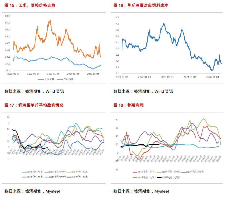 饲料成本方面,5月饲料成本来看,主要受豆粕价格影响而有所下跌,目前单斤鸡蛋对应的饲料成本价格为2.8元/斤附近。考虑到当前豆粕价格处于低位,玉米价格变化不大,预计6月饲料成本下跌的概率较小且空间相对有限。