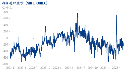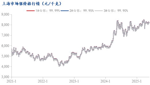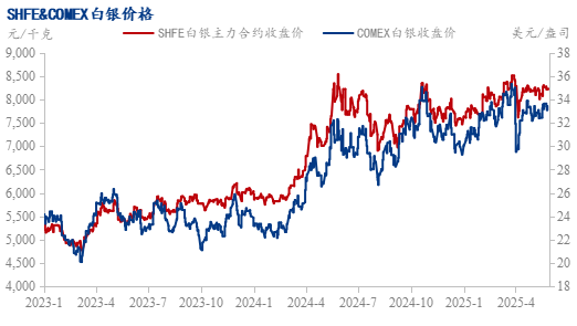 白银的金融属性近期表现活跃。全球白银ETF持仓量在2025年5月增至17,000吨以上,较月初增长5%,显示投资者避险需求升温。但白银工业属性与金融属性难以共振,限制了价格弹性。短期沪银主力合约参考运行区间 8100-8500 元/千克。