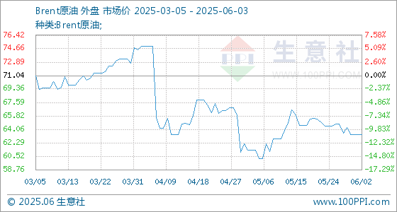 6月3日生意社Brent原油基准价为63.35美元/桶