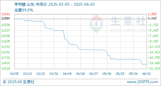 6月3日,生意社苯甲醇基准价为10380.00元/吨,与本月初持平。