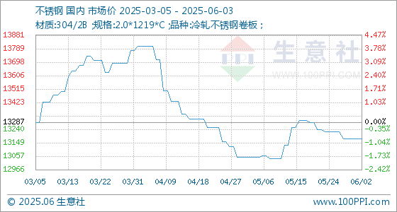 6月3日生意社不锈钢基准价为13175.00元/吨