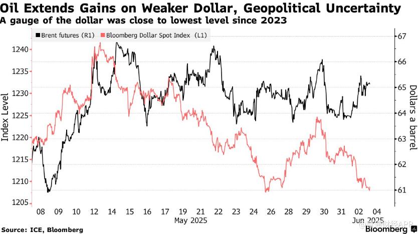 受美元走弱和地缘政治不确定性影响,油价延续涨势