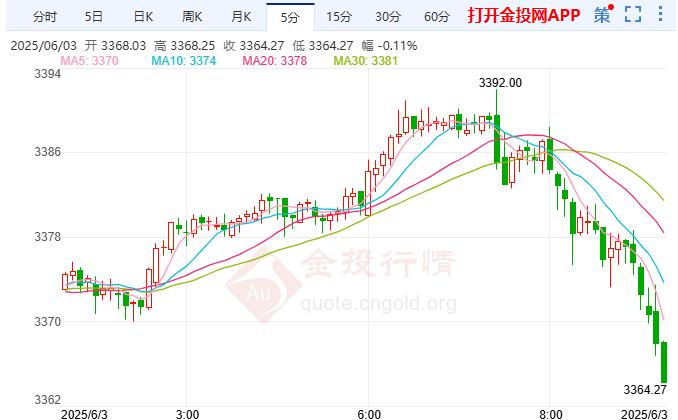 今日周二(6月3日)亚市早盘,现货黄金未能延续昨日强劲反弹的动力,目前交投报3365.24美元/盎司,跌幅0.46%,本交易日将出炉美国4月工厂订单月率和美国4月JOLTs职位空缺数据,投资者需要重点关注,另外继续关注地缘局势和国际贸易局势相关消息。