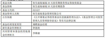 恒生前海福瑞30天持有期债券增聘钟恩庚