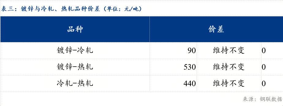 重庆、上海地区冷轧板卷区域价差维持不变;重庆、广州冷轧板卷区域价差维持不变。重庆、上海镀锌板卷区域价差维持不变;重庆、广州镀锌板卷区域价差扩大20元/吨。镀锌、冷轧品种价差维持不变;镀锌、热轧品种价差维持不变 ;冷轧、热轧品种价差维持不变。