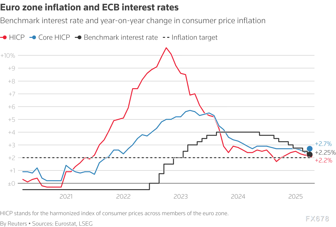 图:欧元区通胀和欧洲央行利率
