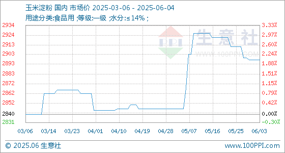 6月4日生意社玉米淀粉基准价为2898.00元/吨
