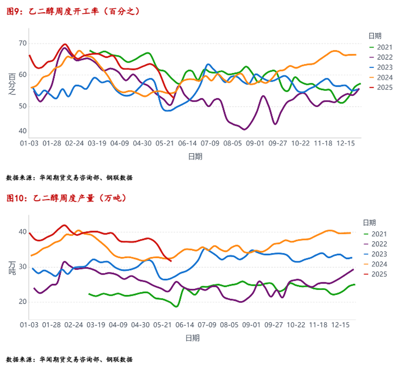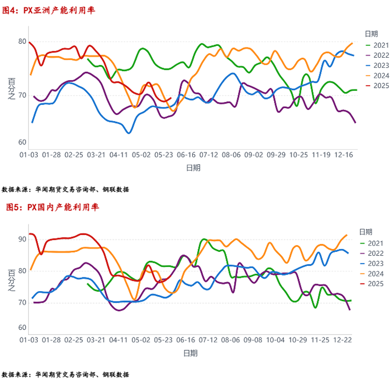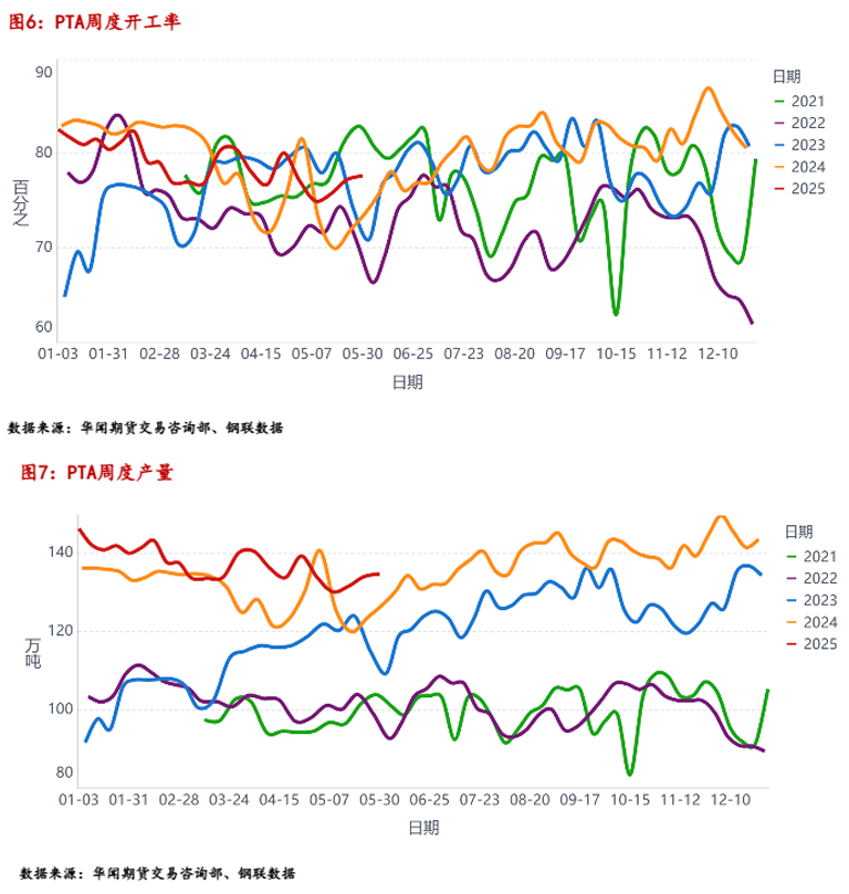 清明节前后,特朗普宣布对全球多个国家加征对等关税,对中国加征34%关税,后续再次加征50%关税,市场调低了全球对于原油需求的预期。5月份,随着中美贸易谈判取得实质性进展,市场迎来积极的宏观情绪,5月中上旬聚酯板块整体偏强运行,中下旬冲高后震荡回落运行。