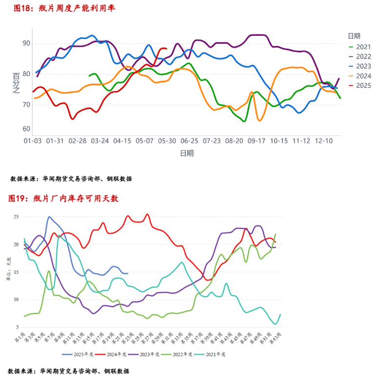 瓶片5月份库存水平整体呈现出震荡变化,供应及需求双增长,处于动态平衡的状态,随着需求的逐步消化,进入六月份瓶片市场运行逻辑发生变化,需要关注瓶片供应是否会面临过剩的问题。