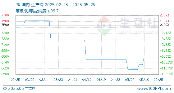 5月26日生意社PX基准价为6850.00元/吨