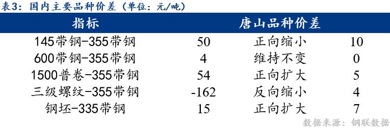 355mm带钢与钢坯市场价格价差正向扩大7元/吨,螺带差反向缩小4元/吨。