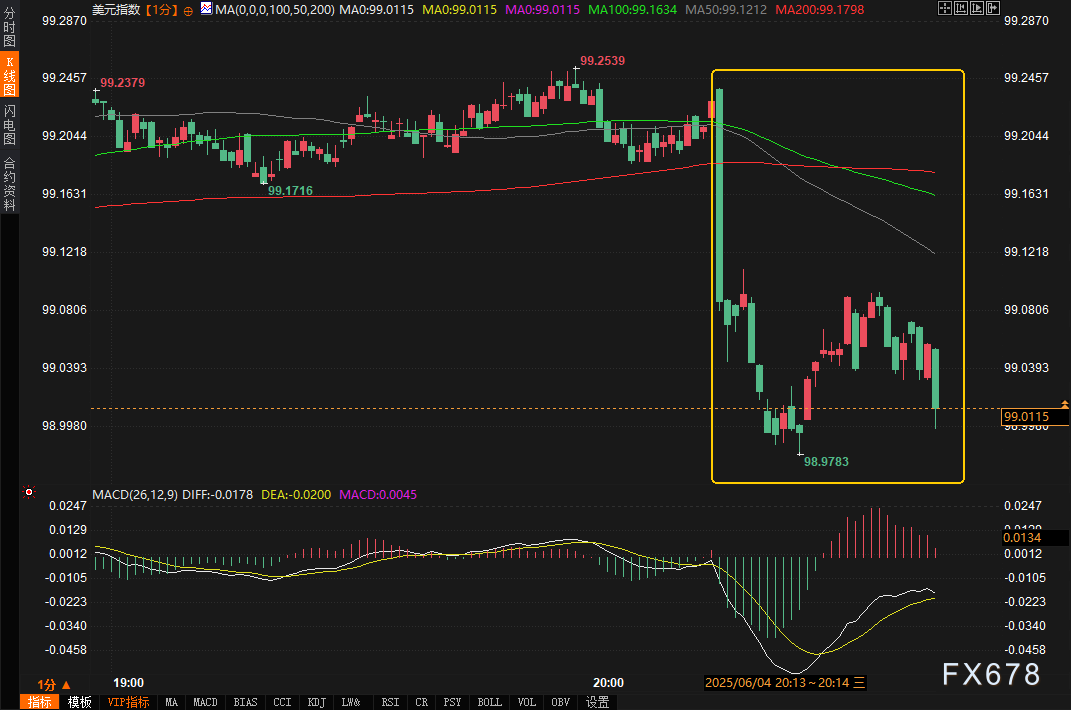 市场即时反应:美元跳水,黄金冲高
