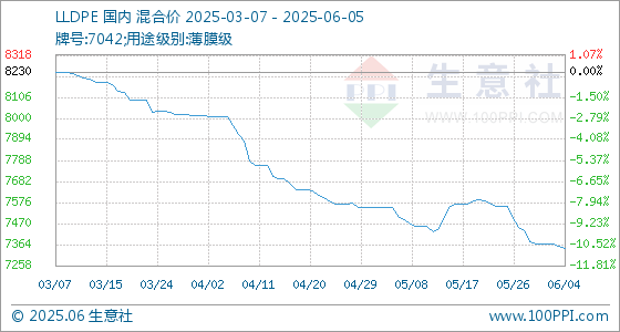 6月5日生意社LLDPE基准价为7346.67元/吨