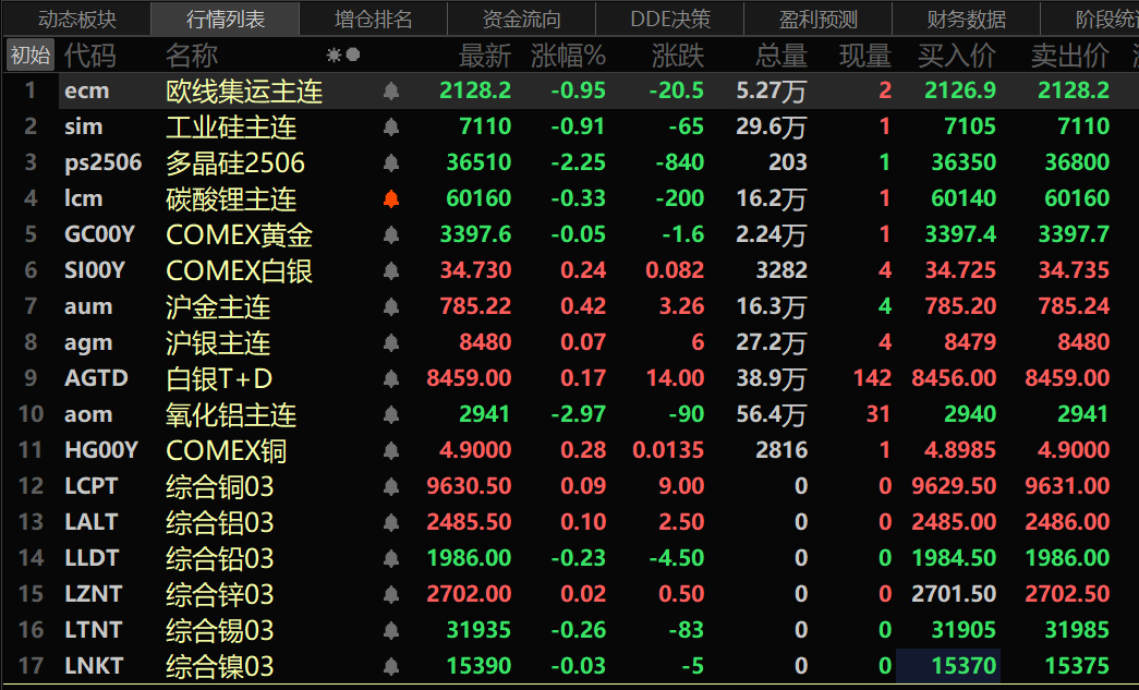 此外,氧化铝跌2.97%。碳酸锂跌0.33%,工业硅跌0.91%,多晶硅跌2.25%。