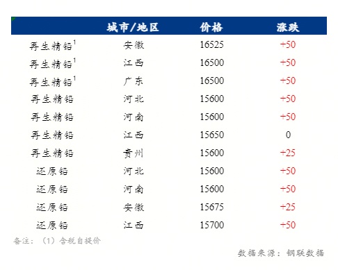 江西、湖南、贵州、广西市场企业日内再生精铅未有出货意愿,未有散单报价。