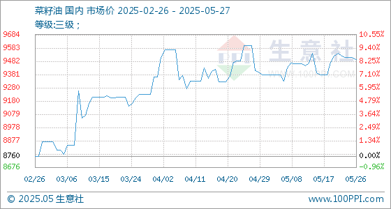 5月27日生意社菜籽油基准价为9493.33元/吨