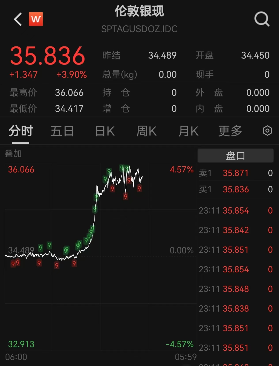 值得注意的是,现货白银短线持续拉升,站上35美元/盎司关口,创下2012年10月以来新高,今年迄今涨逾21%。