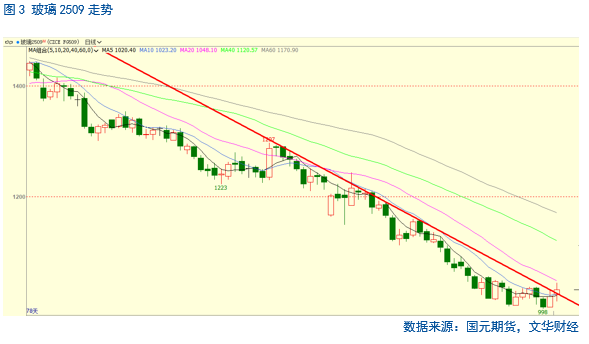 6月,玻璃需求存在进一步转弱的预期,由于6月初吴江产线出料,且沙河仍有一条650吨浮法玻璃产线存在点火预期,玻璃存在供增需减的预期,后续走势或将延续偏弱。