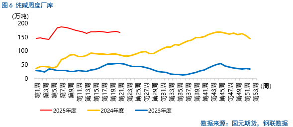 6月,尽管纯碱存在新增装置,不过考虑到前期检修计划,以及夏季检修,纯碱供应端存在一定变数,但整体仍显充裕。需求方面,拿货情绪暂无改善预期,因此整体来看,纯碱库存压力难化,价格或存在下行预期。