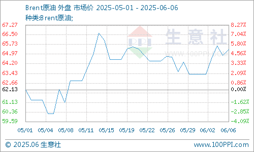 地缘争端持续,欧佩克+八个主要产油国同意7月将石油日产量增加41.1万桶,增产未超预期,原油偏强走势。截止6月5日,美国WTI原油期货7月合约结算价报63.37美元/桶,布伦特原油期货8月合约结算价报65.34美元/桶。
