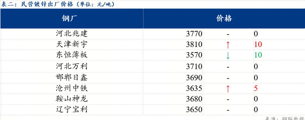 今日北方民营钢厂镀锌出厂指导价在3570元/吨-3800元/吨。