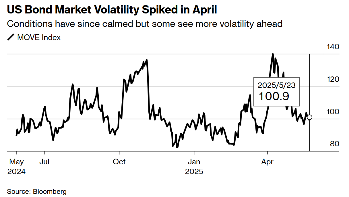 鉴于自特朗普4月对全球贸易发起冲击以来,美国国债与股票一起暴跌,全球最大债券市场的波动性升至两年高点,随后市场进入相对平静期,这种谨慎可能显得过度。追踪欧美固定收益资产价格预期波动的指标处于相对较低水平。