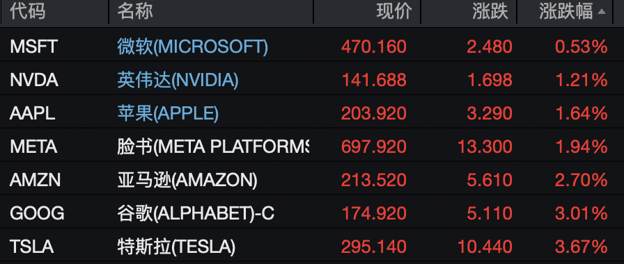 当地时间6月6日,美股大型科技股全线上涨。特斯拉、谷歌涨逾3%,亚马逊涨逾2%,脸书、苹果、英伟达涨逾1%,微软涨0.53%。
