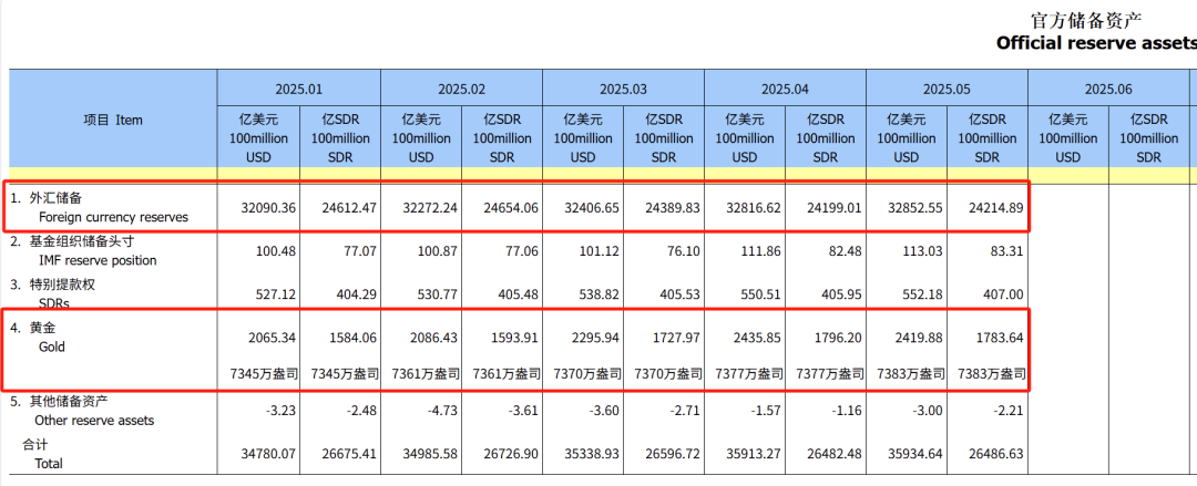 与此同时,央行公布数据显示,中国5月末黄金储备为7383万盎司,环比增加6万盎司,为连续第7个月增持黄金。