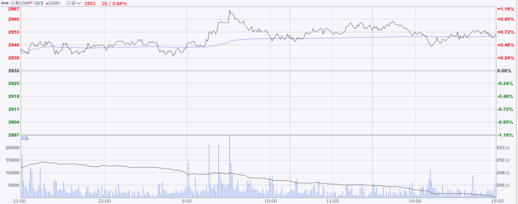 5月23日,豆粕期货主力M2509合约延续偏强震荡走势。