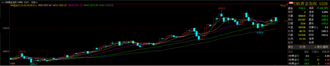 花旗银行将未来3个月的国际金价预测价格上调至3500美元/盎司,原因在于地缘政治风险、关税风险和对美国债务问题的担忧。瑞银也维持看涨立场,预计国际金价将重新测试3500美元/盎司。