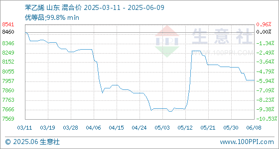 6月9日生意社苯乙烯基准价为7970.00元/吨