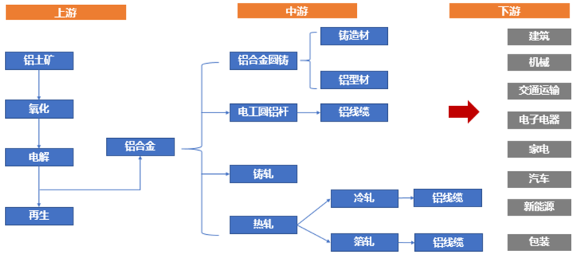 铝合金产业链是一个高度集成、上下游协同发展的复杂系统,核心环节包括上游原材料供应、中游加工制造以及下游产品应用。