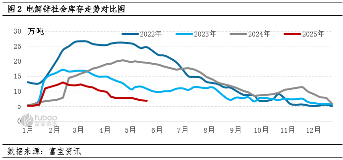 第二,供应端:库存下降但锌矿充足。5月国内锌锭社会库存整体减少,主要受需求逐步复苏及中美关税缓和预期提振。据数据监测,截至5月底,国内锌锭社会库存下滑至6.98万吨,较4月末下降约0.71万吨,低库存叠加现货市场供应紧张,给到价格支撑。但原料端,锌矿供应依然充足,进口锌精矿加工费维持在较高水平(约50美元/干吨),冶炼厂利润尚可,供应端对锌价的支撑有限。