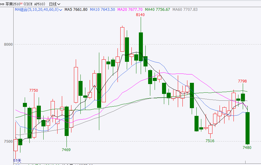 近两周国内冷库去库速度明显放缓,导致供应端压力增大。今日郑州苹果价格出现较大幅下跌,截至收盘主力2510合约报7486元/吨,日下跌252元/吨,跌幅3.26%。