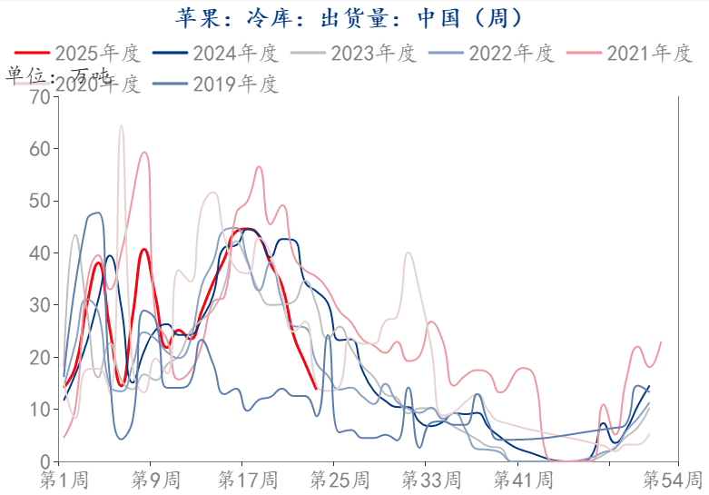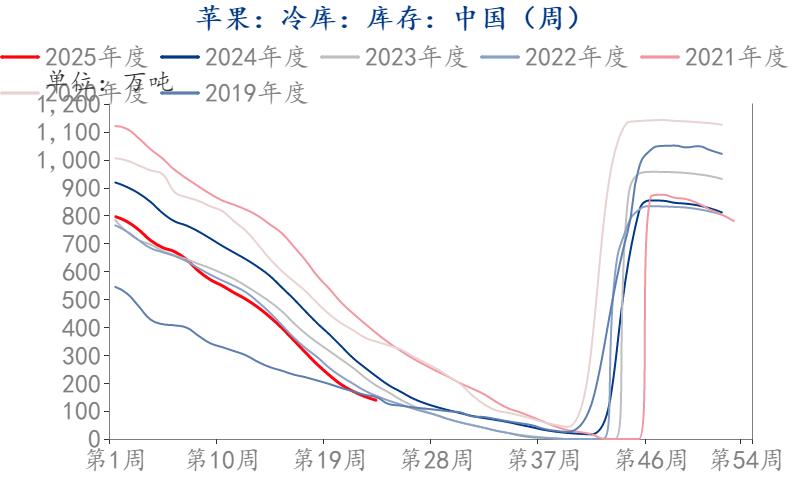 (1)时令水果冲击下,苹果消费淡季,市场走货一般,产区去库速度接连放缓,与往年同期库存差距逐渐缩小。