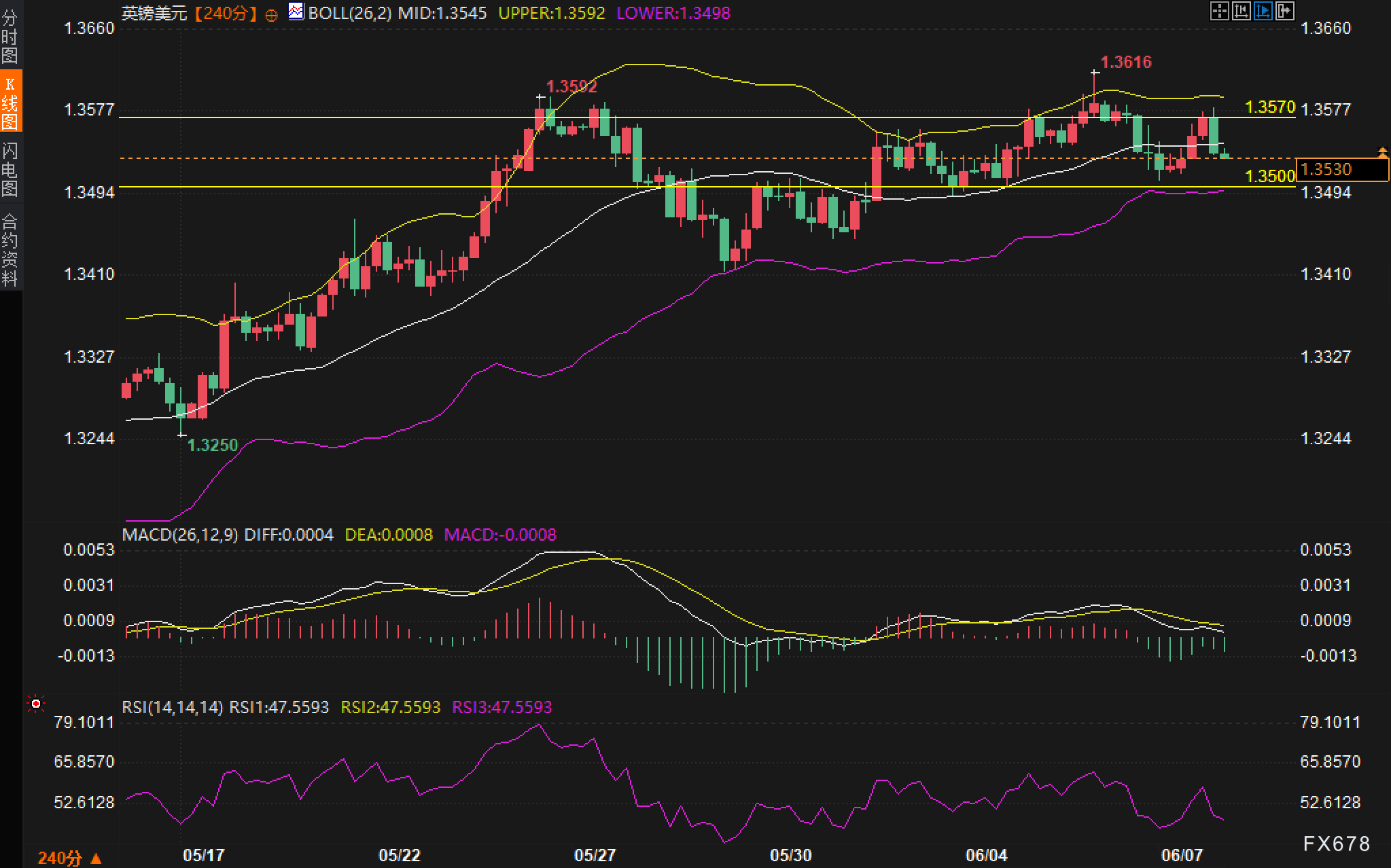 汇通财经APP讯——周一(6月9日),英镑兑美元在北美时段承压,交投于1.353附近。市场正在消化一系列即将出炉的英国本土数据与全球宏观风险事件,整体波动性或将放大。