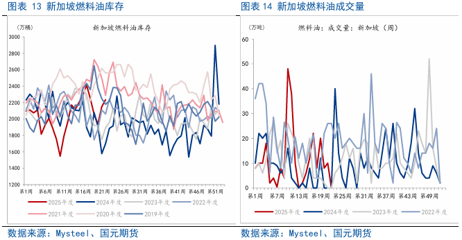 新加坡企业发展局(ESG)公布的数据显示,截至5月28日当周,新加坡残渣燃料油(包含燃料油及低硫含蜡残油)库存环比增长83.2万桶至2,233.8万桶,实现3.9%的周度增幅,创近一个月库存新高。燃油需求表现不温不火,限制了库存的减少。陆上燃料油进口量较前一周下降18%,至68.6万吨,其中大部分进口来自俄罗斯。与此同时,燃料油总出口量增长7%,至逾33.1万吨。除区域存储中心马来西亚外,大多数出口量发往中国。本月亚洲依然供应充足,5月份到货量总计约为550万吨,较4月份攀升。当周,包括石脑油、汽油、重整油在内的轻质馏分油库存下降53.3万桶至1,302.1万桶,触及近七个月库存低点;当周,中质馏分油库存同步减少36.9万桶至992.6万桶,创两周以来新低。当周柴油/轻油净出口量较前周下滑69%,主要受印度和韩国进口货源集中到港影响,这两大来源地的进口占比超过总到货量的八成。