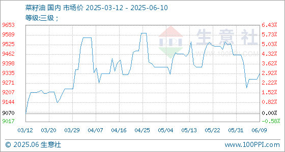 6月10日生意社菜籽油基准价为9331.67元/吨