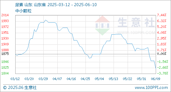 6月10日,生意社尿素基准价为1821.67元/吨,与本月初(1892.00元/吨)相比,下降了3.72%。