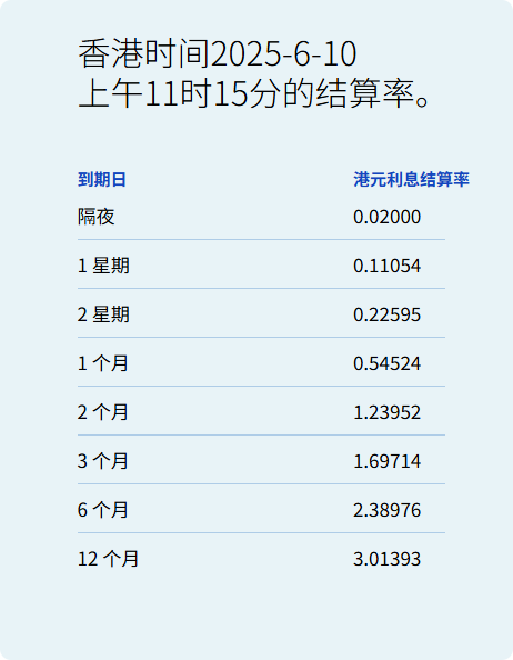 港元拆息持续偏软一个月期六连跌报0.55%但一、两周利率齐升