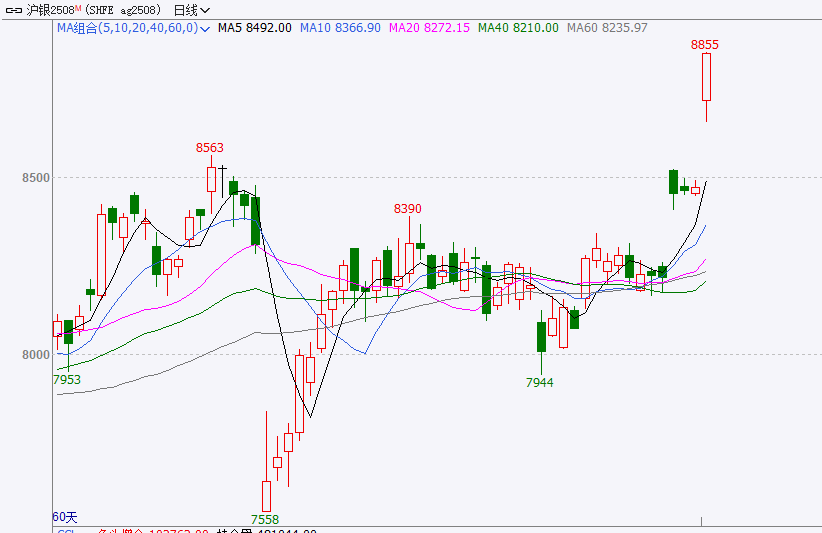 周三夜盘,受外盘大涨影响,沪银跳空高开,一举突破2012年以来的最高点,截止收盘涨幅达4.49%。