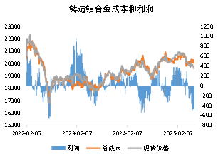 整体而言,短期从ADC12与A00电解铝价格看,历年价差波动约在-500至1000元/吨之间,11月价差通常在300元/吨附近,而当前沪铝2511合约价格19725元/吨,与AD2511价差-535元/吨已处于相对低位,另外考虑铸造铝合金现货价格与成本,预计短期估值区间在19200-20000元/吨。中长期来看,铸造铝合金产能过剩,行业利润水平偏低,又受限于原料废铝供应偏紧,实际产量增速缓慢,终端主要依靠汽车板块,且燃油车耗用占比大于新能源汽车,暂无其他需求亮点,价格波动或围绕沪铝区间震荡为主。