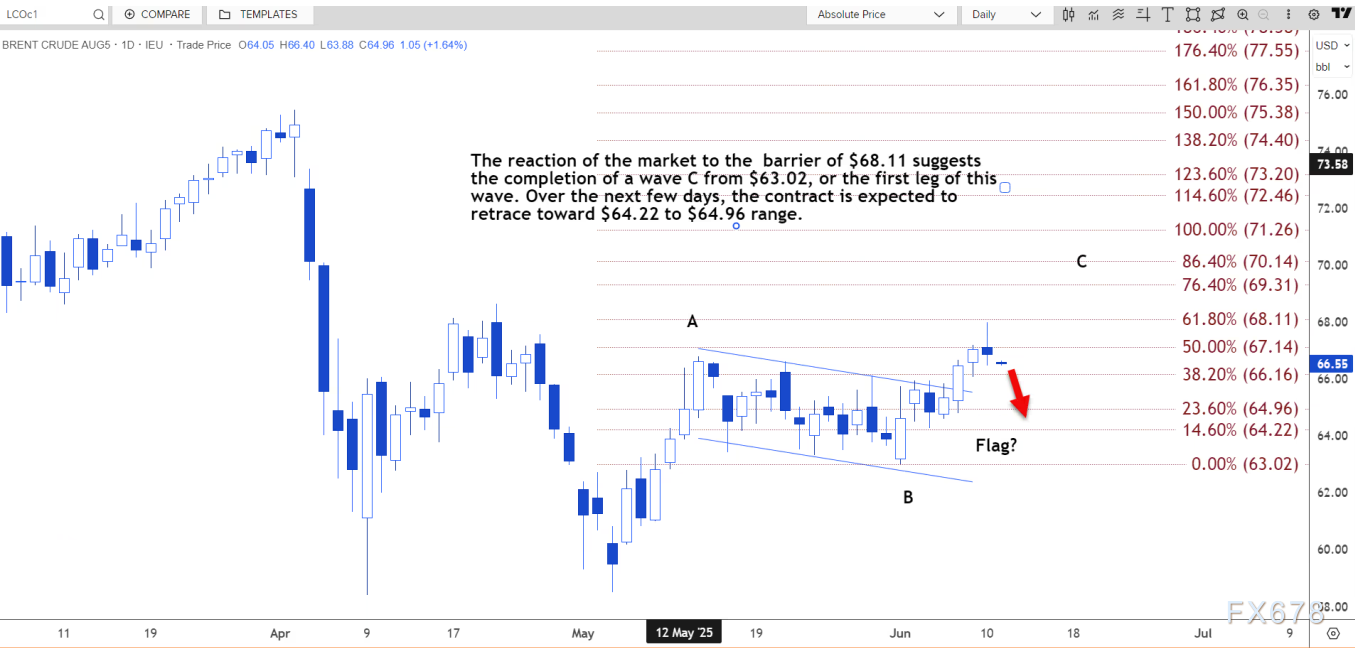 技术分析:布伦特原油可能进一步回落至65.43美元至65.77美元区间