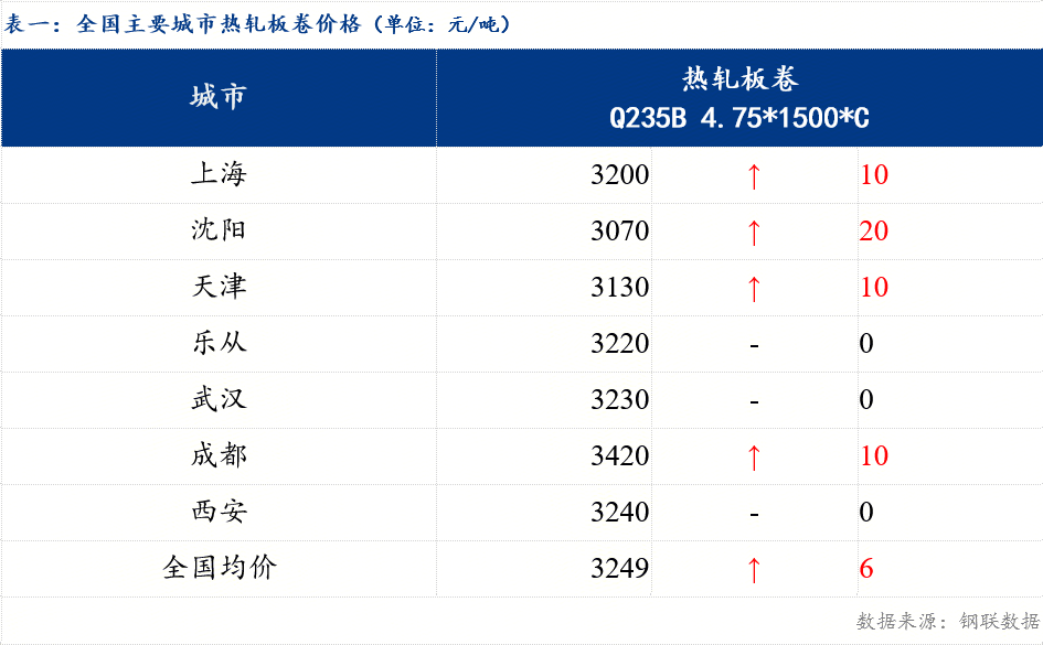 主要城市价格为上海3200元/吨,沈阳3070元/吨,天津3130元/吨,乐从3220元/吨,武汉3230元/吨,成都3420元/吨,西安3240元/吨。