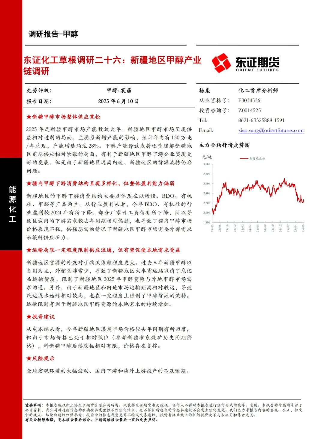 甲醇:东证化工草根调研二十六:新疆地区甲醇产业链调研